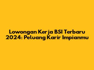 Lowongan Kerja BSI Terbaru 2024