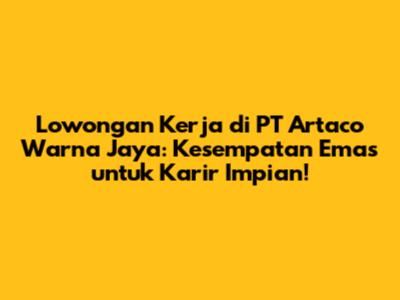 Lowongan kerja di PT Artaco Warna Jaya menjadi topik hangat bagi para pencari kerja. Perusahaan yang bergerak di bidang industri ini seringkali membuka berbagai posisi menarik. Artikel ini akan membahas secara mendalam mengenai lowongan kerja di PT Artaco Warna Jaya, mulai dari posisi yang tersedia, persyaratan yang dibutuhkan, hingga tips sukses melamar. Jadi, buat kalian yang sedang mencari pekerjaan, jangan lewatkan informasi penting ini!