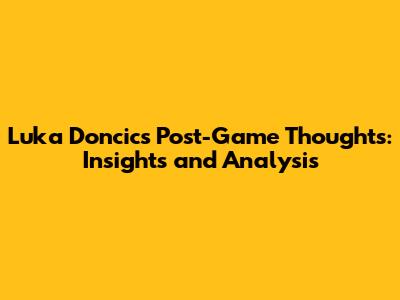 Luka Doncic's Post-Game Thoughts: Insights And Analysis