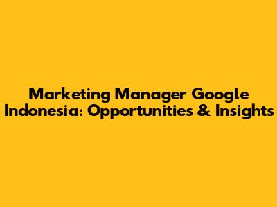 Marketing Manager Google Indonesia: Opportunities & Insights