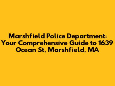 Hey everyone! Today, we're diving deep into the Marshfield Police Department located at 1639 Ocean St, Marshfield, MA. We'll cover everything you need to know, from their services and mission to how to get in touch. Buckle up, because we're about to explore the ins and outs of this essential community resource! This isn't just about a building; it's about the people who serve and protect the town of Marshfield. So, grab a coffee (or whatever you're into), and let's get started. This article is your go-to guide for all things related to the Marshfield Police Department. We'll break down their roles, responsibilities, and how they contribute to the safety and well-being of the Marshfield community. Understanding your local police department is crucial, and we're here to make it easy and informative. Whether you're a long-time resident, a new arrival, or just curious, this is the place to be. We aim to provide clear, concise, and helpful information.