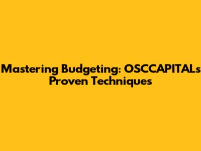 Mastering Budgeting: OSCCAPITAL's Proven Techniques
