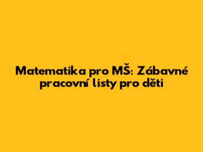 Matematika Pro MŠ: Zábavné Pracovní Listy Pro Děti