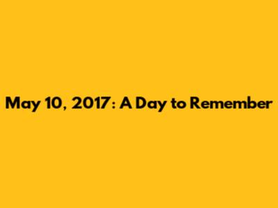 Hey everyone, let's take a trip down memory lane and zoom in on May 10, 2017. What a day it was! We're gonna dive into the history, the major events, and all the cool stuff that was happening around the globe. This isn't just about listing facts; it's about getting a feel for the vibe of that day and remembering the moments that shaped our world. So, grab a seat, relax, and let's explore May 10, 2017 together! We'll cover everything from the headlines to the hidden gems, making sure you get a complete picture of what made this day so unique. Let's see what went down in news, sports, business, technology, entertainment, and more. Buckle up, it's gonna be a fun ride!