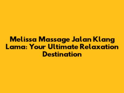 Melissa Massage Jalan Klang Lama: Your Guide