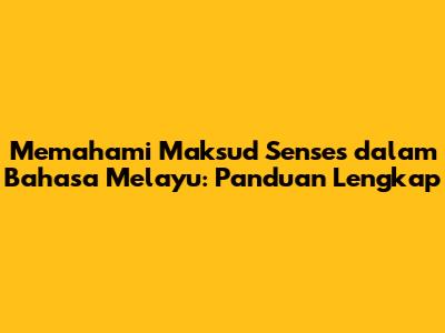 Memahami Maksud Senses Dalam Bahasa Melayu