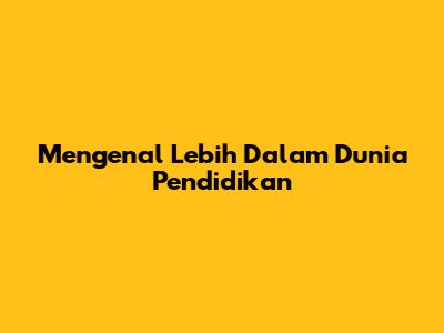 Mengenal Lebih Dalam Dunia Pendidikan