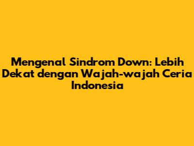 Ciri-ciri sindrom Down dapat bervariasi dari satu orang ke orang lain. Tapi, ada beberapa karakteristik umum yang sering kita lihat. Banyak dari mereka yang memiliki fitur wajah yang khas, seperti mata yang sipit ke atas, hidung yang lebih kecil, dan lidah yang cenderung menonjol. Namun, penting untuk diingat, setiap individu dengan sindrom Down adalah unik. Ada juga karakteristik fisik lain seperti postur tubuh yang agak pendek, tangan dan kaki yang lebih kecil, serta otot yang cenderung lebih lemah. Selain itu, mereka sering mengalami keterlambatan dalam perkembangan, termasuk kemampuan berbicara dan belajar. Tapi, jangan salah, keterlambatan ini bukan berarti mereka tidak mampu. Dengan dukungan dan stimulasi yang tepat, mereka bisa berkembang dan mencapai potensi penuh mereka. Mereka bisa berprestasi di bidang yang mereka minati, mulai dari seni, olahraga, hingga akademik. Dan yang paling penting, mereka punya hati yang tulus dan penuh kasih sayang. Mereka seringkali sangat ramah, penyayang, dan membawa kebahagiaan bagi orang-orang di sekitar mereka. Jadi, jangan hanya melihat ciri fisiknya, tapi lihatlah potensi dan keindahan yang ada di dalam diri mereka.
