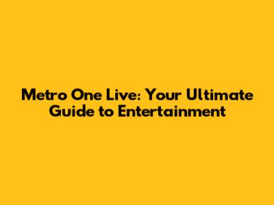 Metro One Live: Your Ultimate Guide