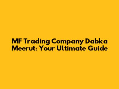 Hey there, folks! Ever found yourself scratching your head, wondering where to snag the best deals in Dabka, Meerut? Well, let me introduce you to MF Trading Company, a name that's been buzzing in the local market for a while. We're diving deep into what makes this company tick, from its product range to its reputation, and everything in between. Buckle up, because we're about to explore the ins and outs of MF Trading, so you know exactly what they offer and if they're the right fit for your needs. Seriously, whether you're a seasoned business owner or just a curious local, this guide is your one-stop shop for all things MF Trading.