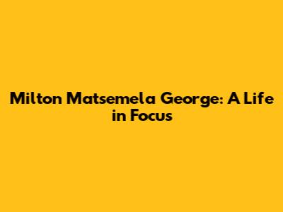 Milton Matsemela George: A Life In Focus