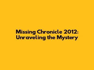 Is "Missing Chronicle 2012" Real or a Myth?