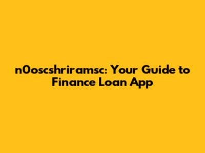 N0oscshriramsc: Your Guide To Finance Loan App
