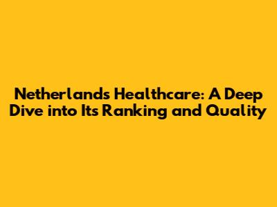 Netherlands Healthcare: Ranking, Quality, And What Makes It Great