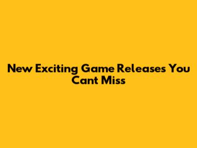New Exciting Game Releases You Can't Miss
