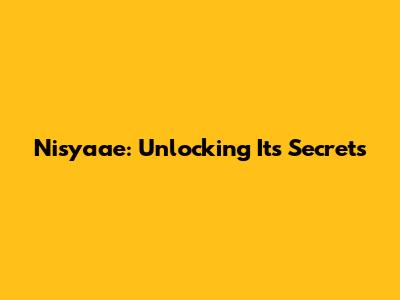 Nisyaae: Your Ultimate Guide