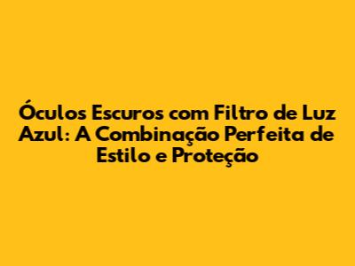 Ah, os óculos escuros! Um acessório que transcende a funcionalidade, tornando-se uma declaração de moda e um escudo para os olhos. Mas, e se esses óculos fossem ainda mais poderosos? Se eles pudessem não apenas proteger do sol, mas também filtrar a luz azul, essa luz que emana de nossos dispositivos digitais e que pode ser tão prejudicial? É aí que entram os óculos escuros com filtro de luz azul: a união perfeita entre estilo, proteção e cuidado com a saúde dos seus olhos. Vamos mergulhar nesse universo e descobrir tudo o que você precisa saber sobre esses óculos incríveis.