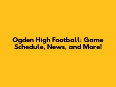 Ogden High Football: Game Schedule, News, And More!