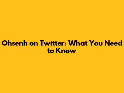 Ohsenh on Twitter: What You Need to Know
