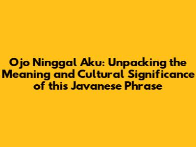 Hey there, language enthusiasts! Have you ever stumbled upon a phrase that just sticks with you, even if you don't quite understand it? Well, for many, "Ojo Ninggal Aku" is one of those phrases. This Javanese expression carries a weight of emotion and cultural nuance that goes beyond its literal translation. In this article, we're diving deep into the meaning, origin, and cultural significance of "Ojo Ninggal Aku." So, buckle up and let's explore the beauty of the Javanese language together!