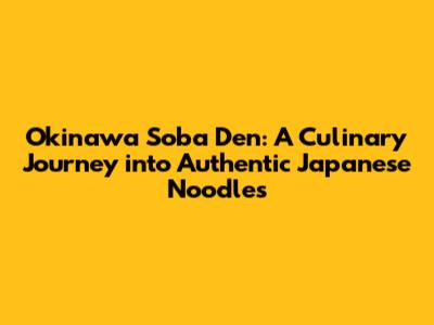 Okinawa Soba Den: Exploring Authentic Japanese Noodles