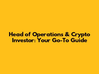 Operations Head & Crypto Investor: Your Go-To Guide