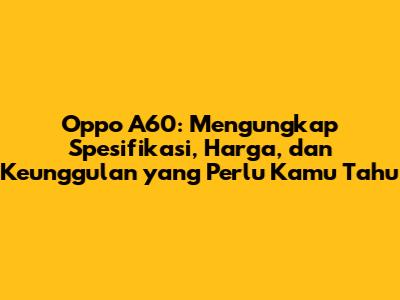 Oppo A60: Harga, Spesifikasi, Dan Keunggulannya