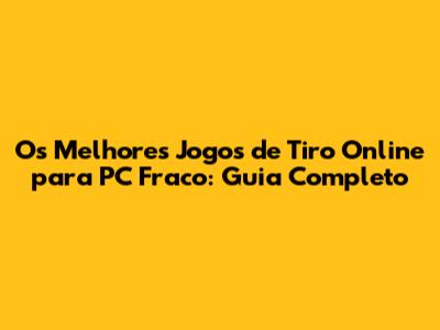 Os Melhores Jogos De Tiro Online Para PC Fraco: Guia Completo