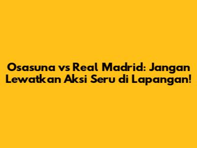 Osasuna vs Real Madrid adalah pertandingan yang sangat sayang untuk dilewatkan. Dengan mengetahui jadwal siaran langsung Osasuna vs Madrid, melakukan analisis prediksi, dan mengetahui cara menonton yang tepat, kamu bisa menikmati setiap momen pertandingan dengan maksimal. Pastikan kamu selalu update dengan informasi terbaru, baik dari sumber resmi maupun dari media olahraga terpercaya. Jangan lupa untuk mendukung tim favoritmu dan menikmati keseruan pertandingan. Selamat menonton!