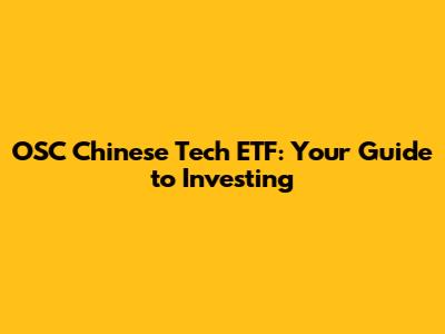 Hey guys! Ever heard of the OSC Chinese Technology Stocks ETF? If you're looking to dive into the exciting world of Chinese tech, this might be your golden ticket. Let's break down everything you need to know about this ETF – from what it is and how it works, to the potential risks and rewards. Getting in on the ground floor of a booming sector can feel amazing! But before you jump in, it's crucial to understand what you're getting yourself into. This guide will walk you through the essentials, helping you make informed decisions about your investments. We'll cover everything from the underlying holdings to the ETF's performance, so you can decide if it's the right fit for your portfolio. So, buckle up, and let's explore the OSC Chinese Technology Stocks ETF together. This isn't just about stocks; it's about understanding a massive, evolving market and the companies that are shaping China's technological future. Ready to get started?