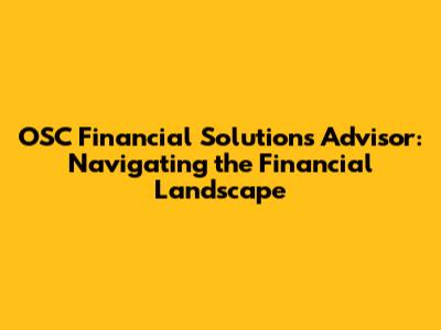 OSC Financial Solutions: Your Expert Advisor