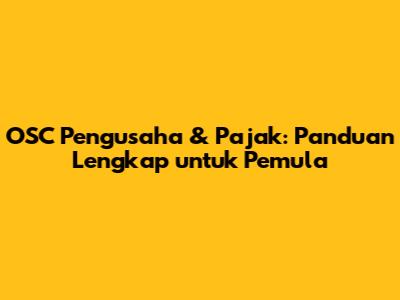 OSC Pengusaha & Pajak: Panduan Lengkap Untuk Pemula