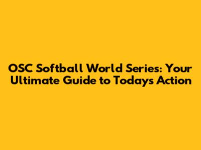 OSC Softball World Series: Schedule, Scores & More!