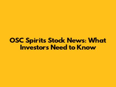 OSC Spirits Stock News: What Investors Need To Know
