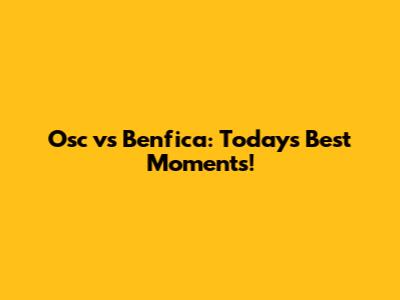 Osc Vs Benfica: Today's Best Moments!