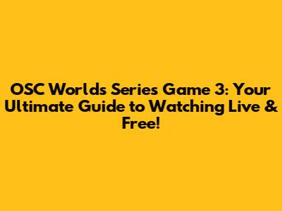 OSC Worlds Series Game 3: Watch Live & Free!