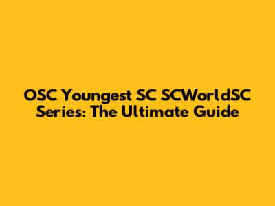 OSC Youngest SC SCWorldSC Series: The Ultimate Guide
