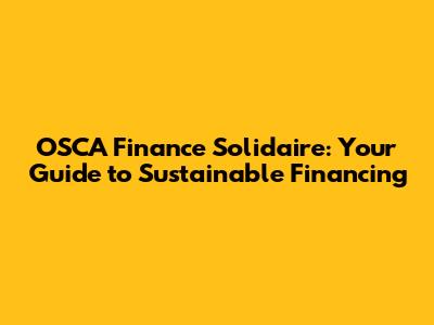 OSCA Finance Solidaire: Your Guide To Sustainable Financing
