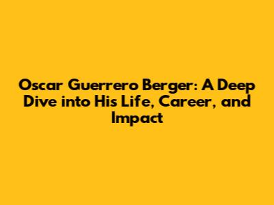 Let's explore the life and career of Oscar Guerrero Berger, a prominent figure whose contributions span various fields. This comprehensive overview will cover his early life, education, professional achievements, and the lasting impact he has made. Whether you're a long-time admirer or just getting acquainted with his work, this article aims to provide a thorough understanding of Oscar Guerrero Berger's journey and accomplishments.