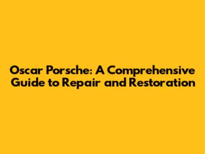 Oscar Porsche: The Ultimate Guide To Repair And Restoration