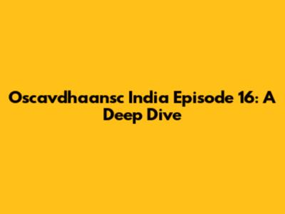 Oscavdhaansc India Episode 16: A Deep Dive