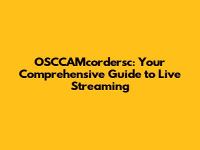 OSCCAMcordersc: Your Guide To Live Streaming