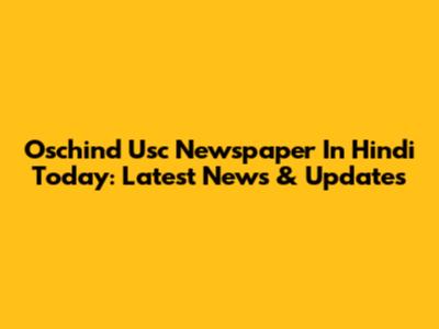 Oschind Usc Newspaper In Hindi Today: Latest News & Updates