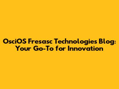 OsciOS Fresasc Tech Blog: Your Go-To For Innovation