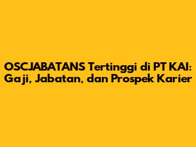 OSCJABATANS tertinggi di PT KAI adalah puncak karier yang menjadi impian banyak orang. Untuk meraih posisi tersebut, dibutuhkan dedikasi, kerja keras, serta kemampuan untuk terus belajar dan mengembangkan diri. PT KAI menawarkan berbagai peluang karier yang menjanjikan, serta fasilitas untuk pengembangan diri karyawan. Dengan memahami struktur organisasi, OSCJABATANS, serta faktor-faktor yang mempengaruhi gaji, kita bisa merencanakan karier yang lebih baik di PT KAI. Jadi, teruslah berusaha, kembangkan diri, dan raih impianmu untuk menjadi bagian dari keluarga besar PT KAI!
