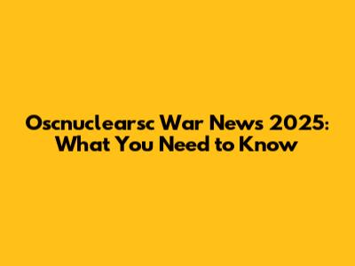 Oscnuclearsc War News 2025: What You Need To Know