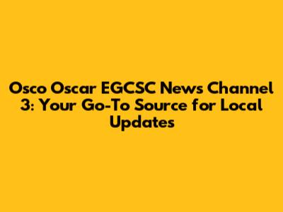 Osco Oscar EGCSC News Channel 3: What You Need To Know