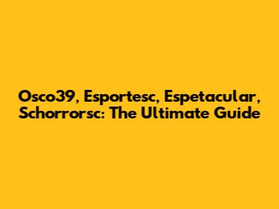 Osco39, Esportesc, Espetacular, Schorrorsc: Ultimate Guide