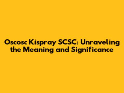 Oscosc Kispray SCSC: Meaning And Understanding