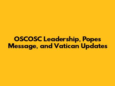 OSCOSC Leadership, Pope's Message, And Vatican Updates